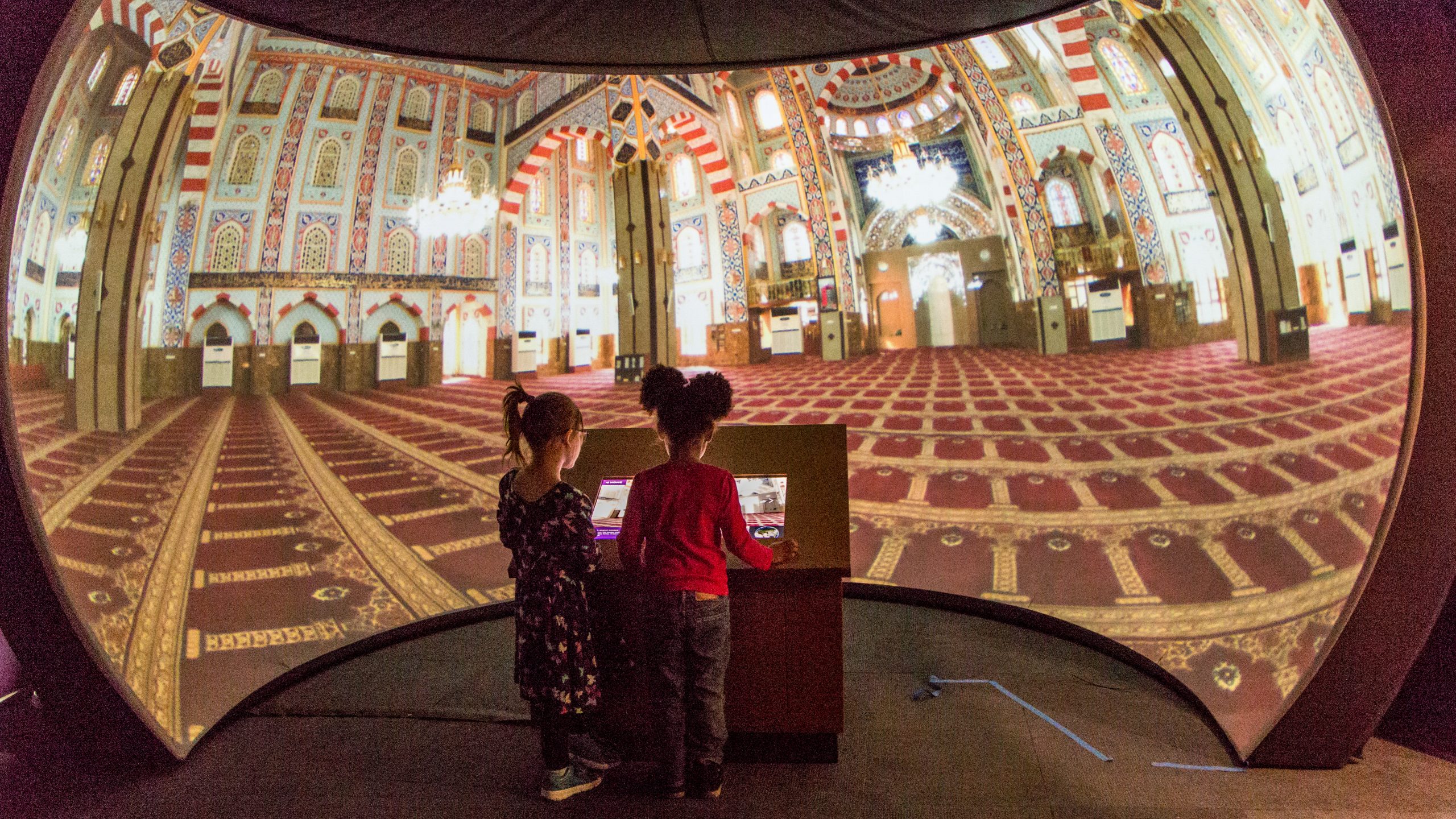 A GeoDome Panorama is part of the Children’s Museum of Manhattan’s America to Zanzibar: Muslim Cultures Near and Far exhibition, using WorldViewer for a 3D exploration of mosque architecture from the Maldives to China. Museum visitors use a touchscreen to see where mosques are located around the world, spin the globe, and zoom in to explore panoramic images showing both the interior and exterior of the mosques. Following the creation of popular exhibits on the cultures of Ancient Greece, China and Japan, the Children’s Museum is continuing its Cultural Exhibition and Programming Series with this exploration of the world’s Muslim cultures.
